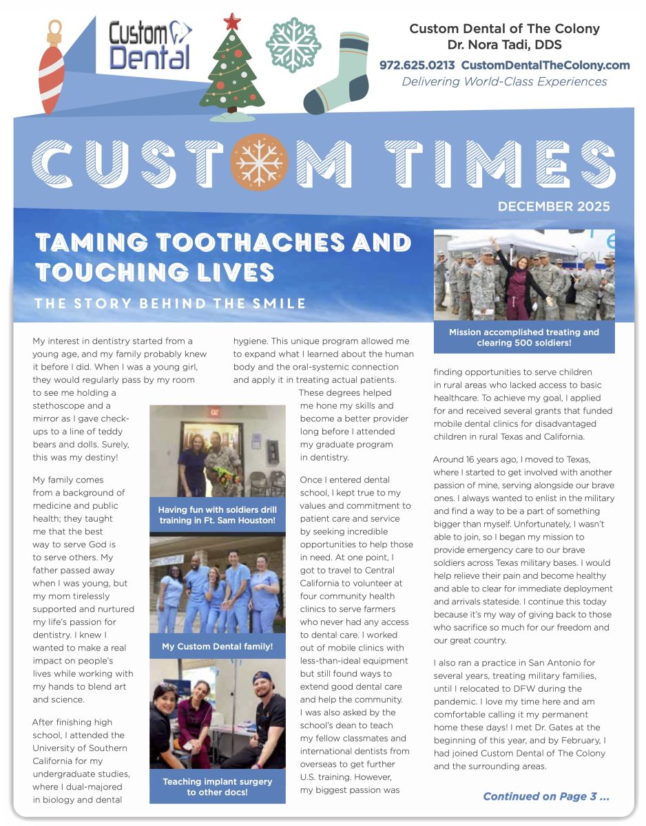 Meet Dr. Nora Tadi | Meet Dr. Bryce Gates | Meet the Team | What Sets Us Apart | Dental Payment Plans | Community Involvement | Patient Newsletter